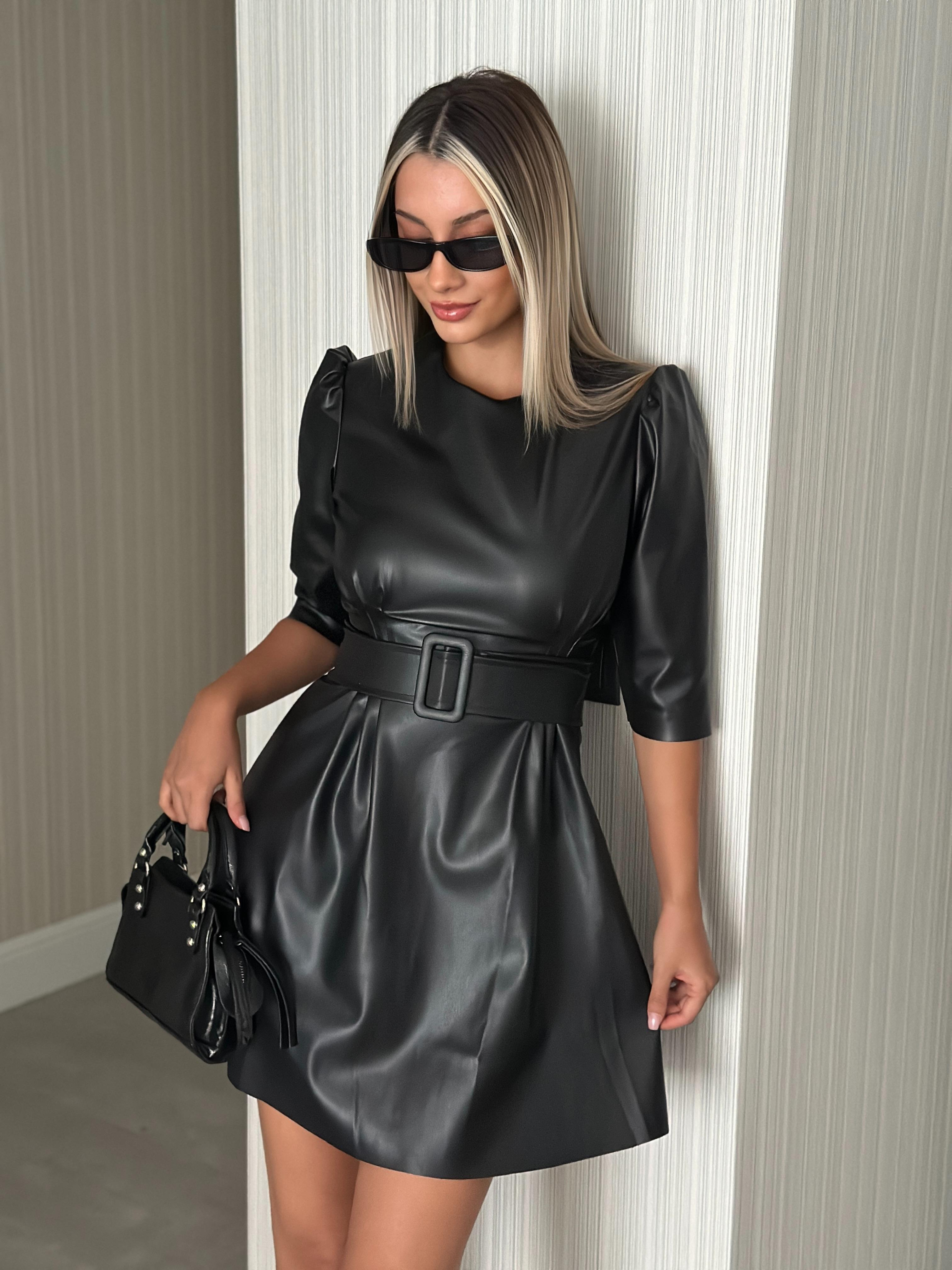 SİYAH DERİ ELBİSE