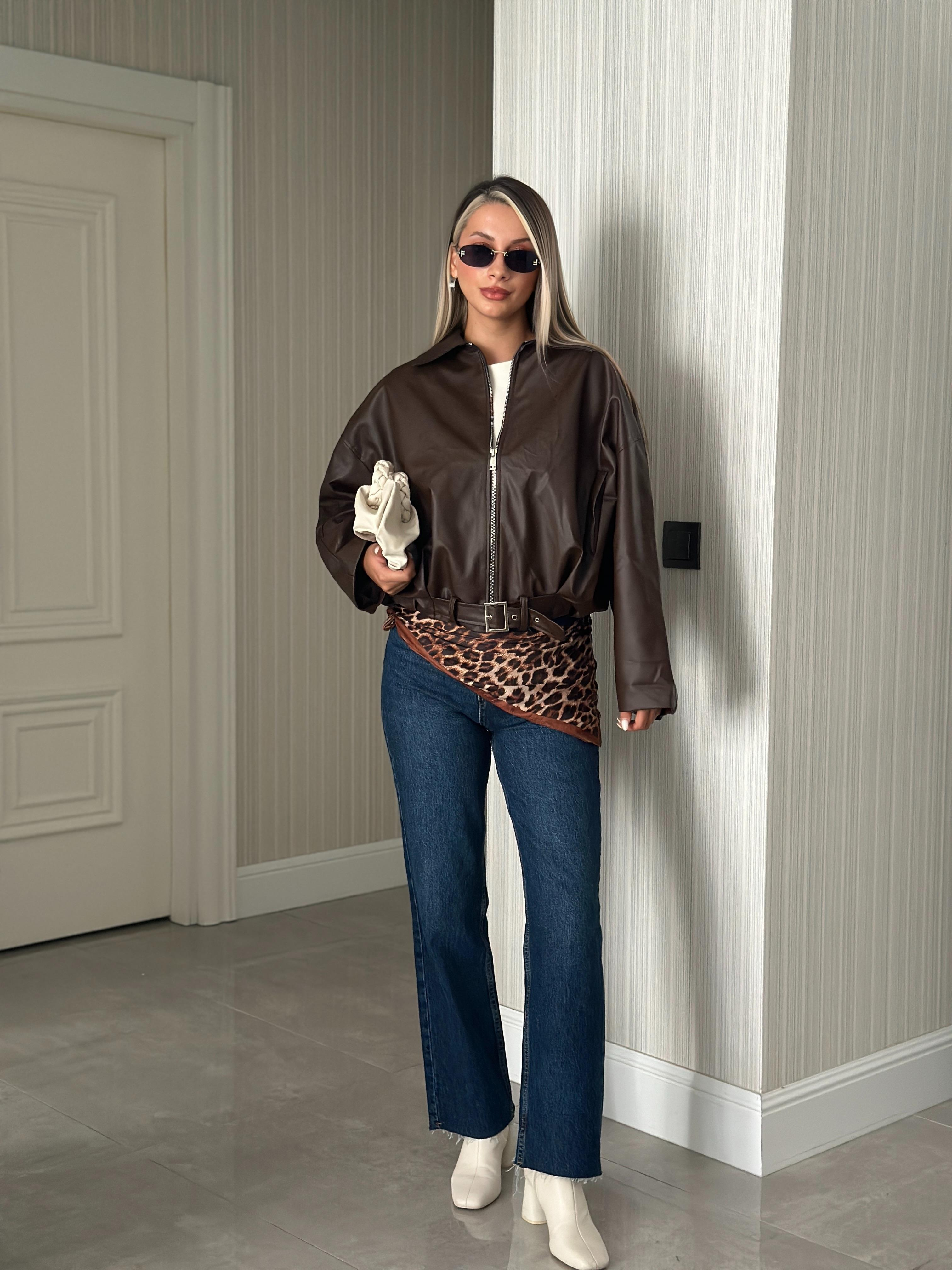 KAHVERENGİ SUNİ DERİ OVERSİZE CEKET